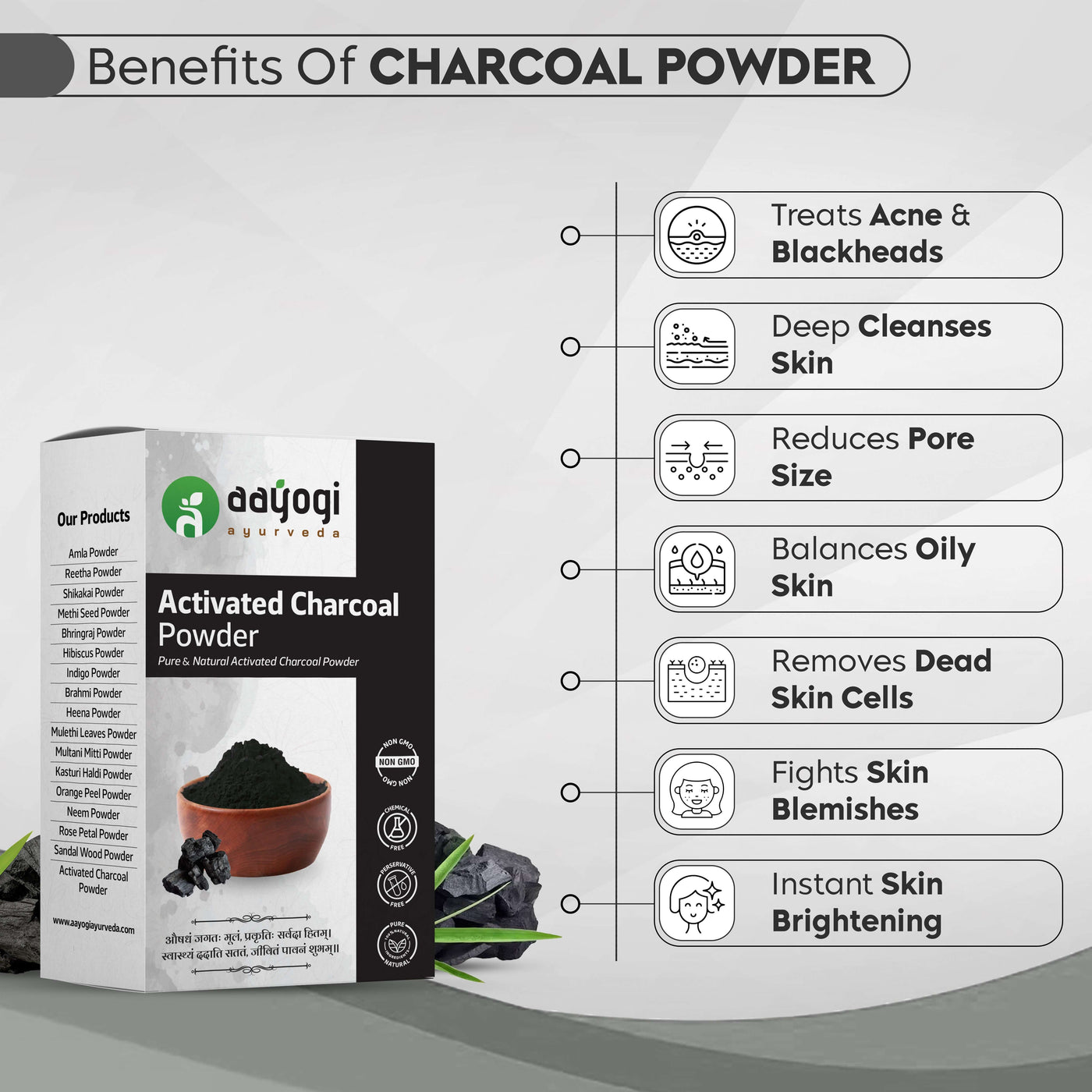 Aayogi Ayurveda Pure & Fresh Activated Charcoal Powder, It is a very popular product which, in recent years has found great popularity due to its powerful detoxifying and purifying properties. The powder, fine in appearance and black in color, is derived from various natural sources such as coconut shells, wood, or peat and is "activated" by high temperatures during a process that increases the surface area of the particle and makes it highly porous.
